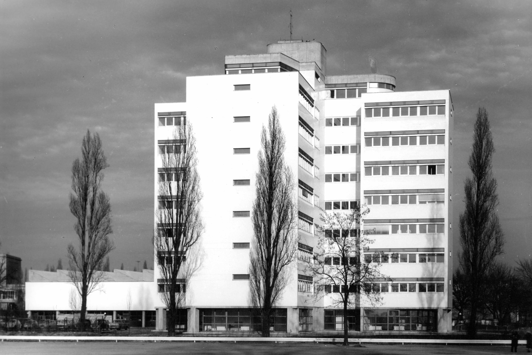 Die Berliner Ausstellungen erhalten in dem 9-geschossigen Punkthaus endlich eine Zusammenfassung ihrer auf dem Ausstellungsgelände zerstreut liegenden Büros. Der 2-geschossige Trakt ist für die Werbefirma Berek vorgesehen. Die vier Türme des Hochhauses sind stützenfrei und ermöglichen so eine beliebige Raumaufteilung. Im Erdgeschoss befinden sich Ausstellungsräume, im Dachgeschoss die Kantine. Im Erdgeschoss des Berekgebäudes befinden sich Werkstätten, Garagen und Archiv, im Obergeschoss Büros und die Druckerei.