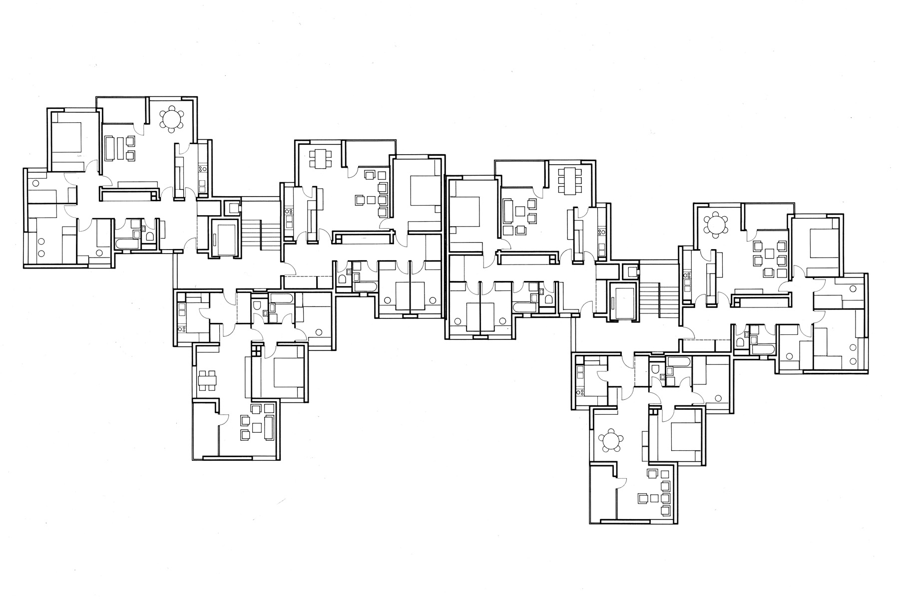 Quergelüftete Wohnungen mit teilweise durchgehenden Wohnräumen und bei Ecktypen Aussicht nach verschiedenen Richtungen. Eine gewisse Weiträumigkeit bei beschränkter Grösse mittels Schrankfluren, die schranklose Räume ermöglichen.