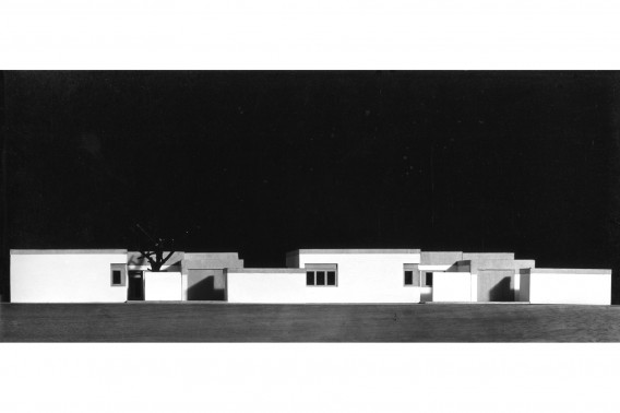 5 Reihenhaustypen, die von 3 Architekten entworfen wurden. Typ A,B Klaus Berger, Typ C Hans Bandel, Typ D,E, Siegfried Hoffie.