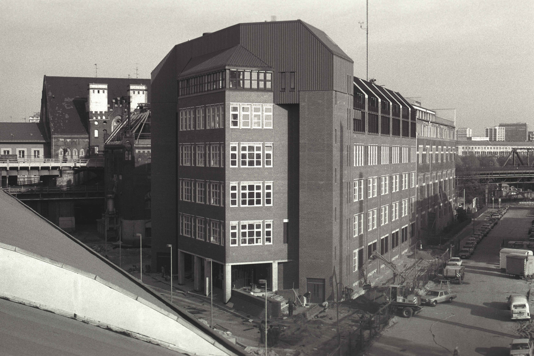 Der Planung des Werkstätten-Erweiterungsbaus für die Hauptverwaltung Elektrische Anlagen der BVG gingen eine Reihe Nutzungsuntersuchungen voraus. Der Neubau schließt an ein Gebäude aus der Zeit der Jahrhundertwende an, das heute als Elektrowerkstatt benutzt wird. Heute: Stark verändert am Kopfbau |