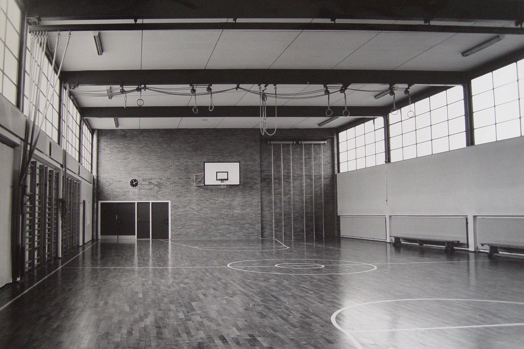 Wettbewerb 1. Preis. 20-klassige Schule mit Sporthalle und Aula. Die Aula konnte wegen finanzieller Schwierigkeiten bis heute nicht realisiert werden.