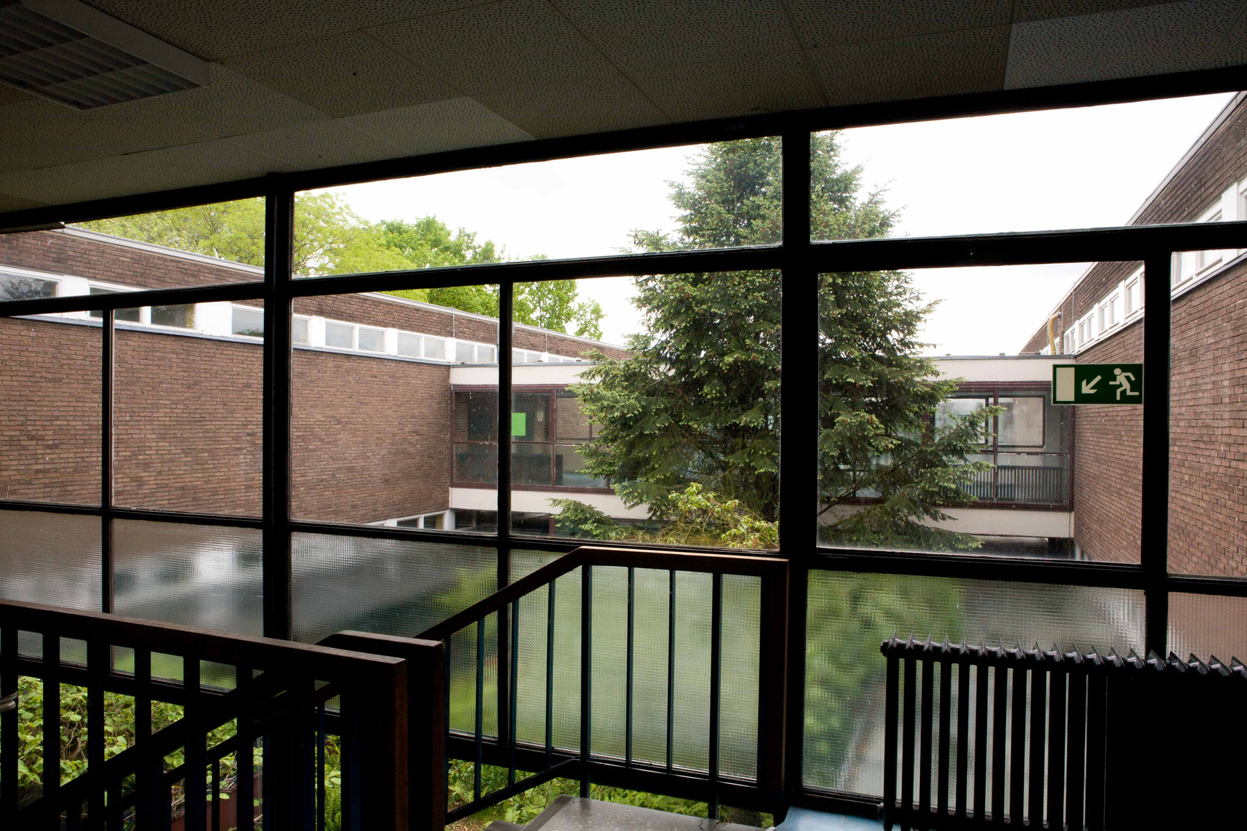 Wettbewerb 1. Preis. 20-klassige Schule mit Sporthalle und Aula. Die Aula konnte wegen finanzieller Schwierigkeiten bis heute nicht realisiert werden. Heute (2013): Die Schule steht unter Denkmalschutz und wird mit finanzieller Hilfe der EU durch "Haberland Architekten BDA" energetisch saniert. |