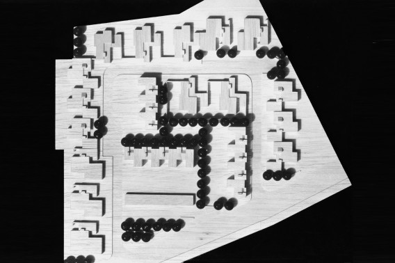 5 Reihenhaustypen, die von 3 Architekten entworfen wurden. Typ A,B Klaus Berger, Typ C Hans Bandel, Typ D,E, Siegfried Hoffie.
